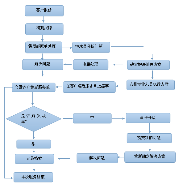 如有小故障或在使用中遇到疑問,跟客戶溝通后,可通過電話、短信、微信、郵箱、傳真等方式解決的,我公司將提供全天候24小時免費服務,隨時提供技術支持。